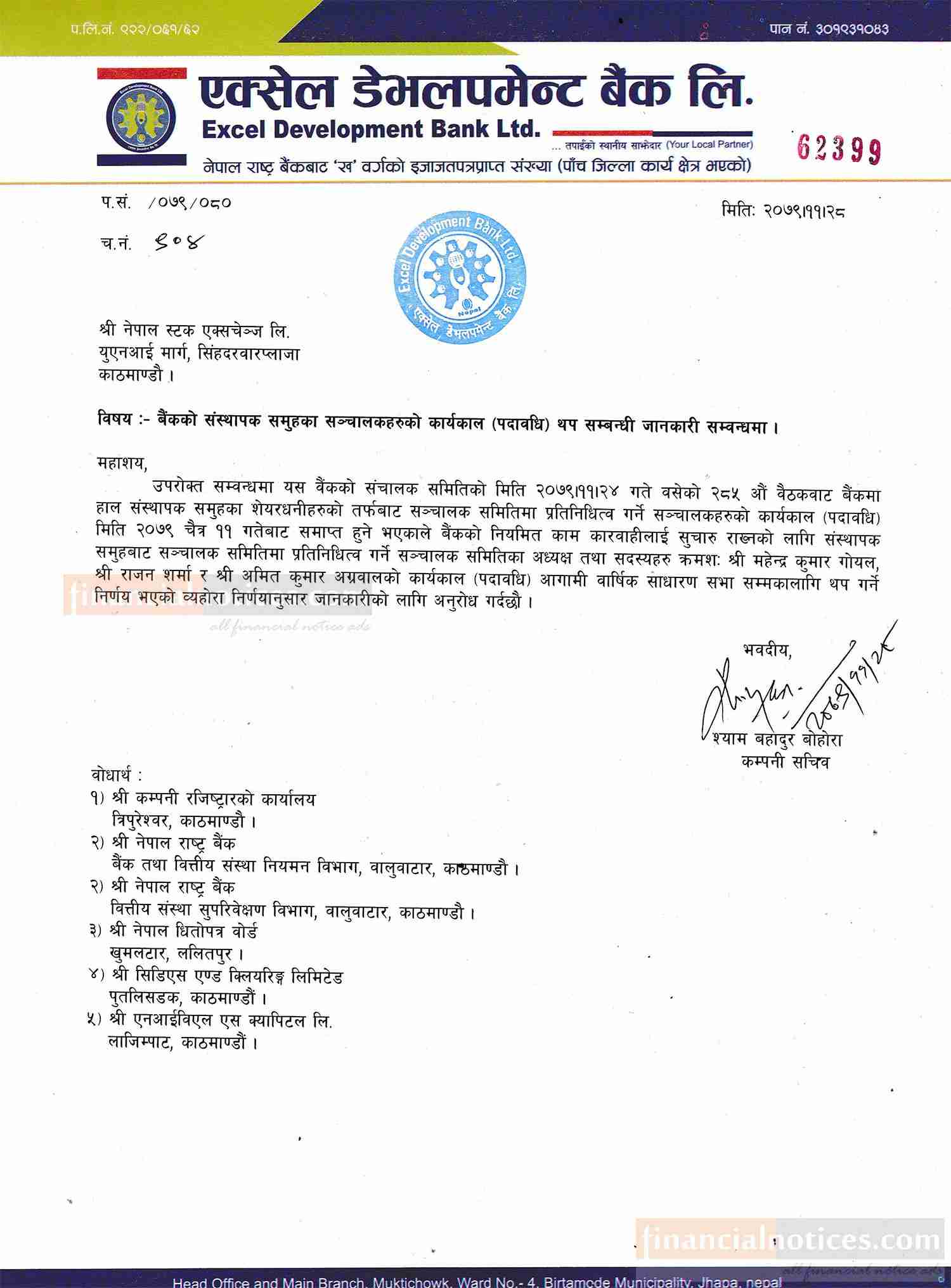 संस्थापक समुहका संचालकहरुको कार्यकाल थप गरिएको सम्बन्धी सूचना