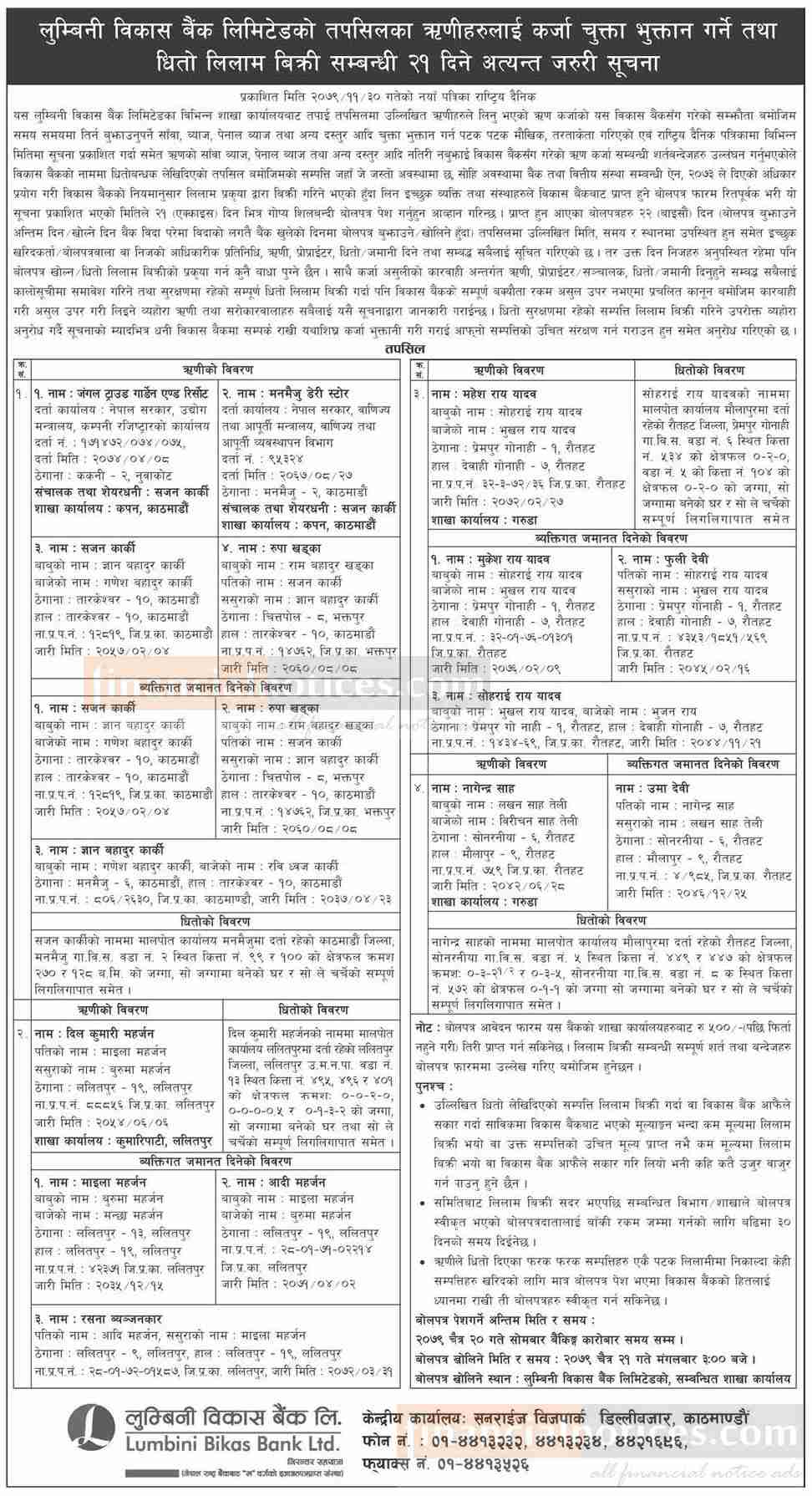 लुम्बिनी विकास बैंकका ऋणीहरुलाई कर्जा चुक्ता भुक्तान गर्नेबारे सूचना