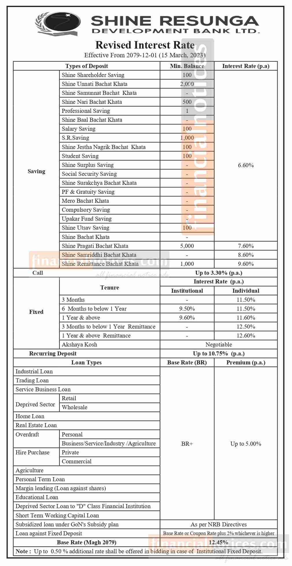साइन रेसुङ्गा डेभलपमेन्ट बैंकको नयाँ ब्याजदर सार्वजनिक - Interest Rates -