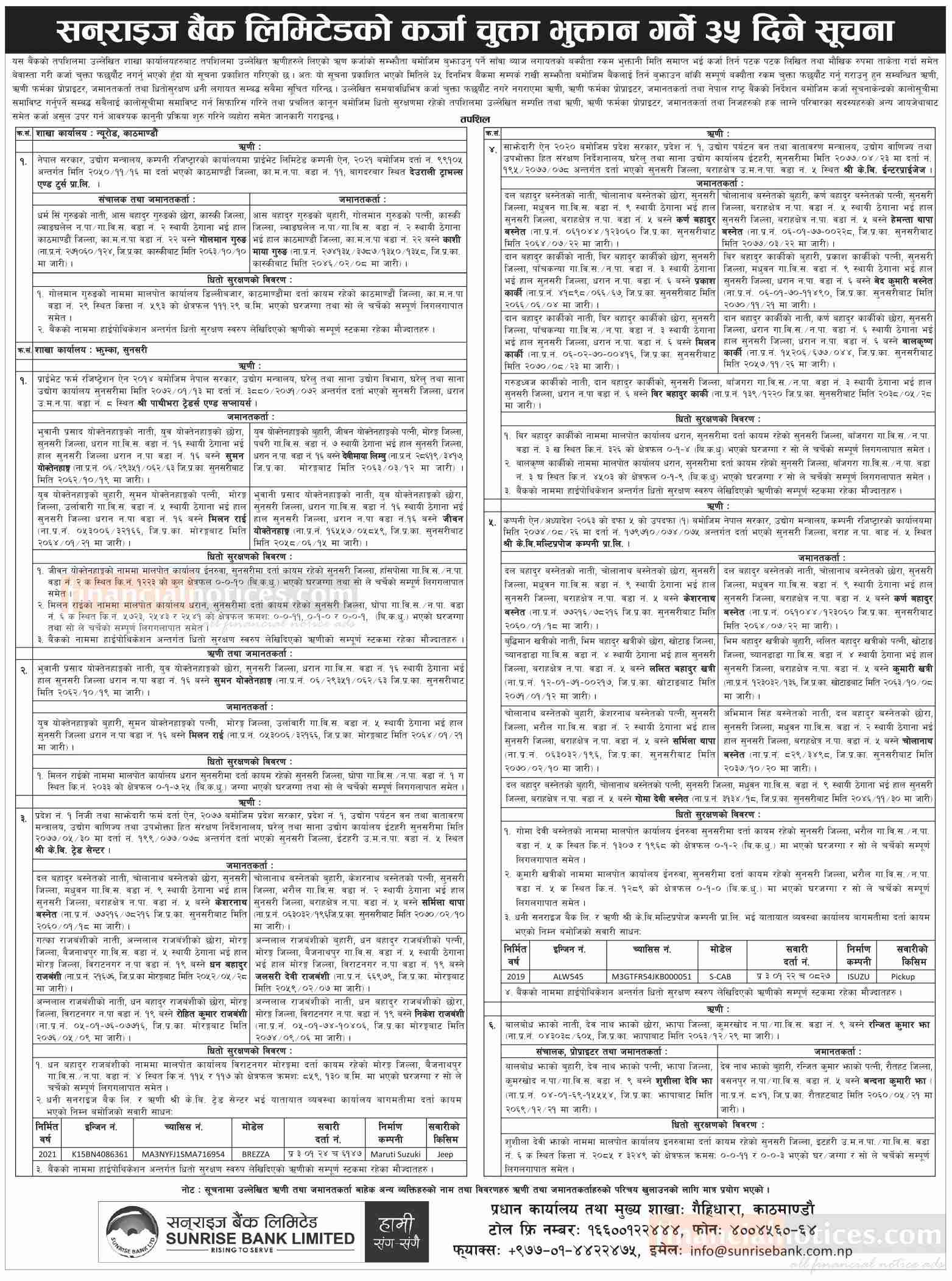 सन्राइज बैंकको कर्जा चुक्ता भुक्तान गर्ने ३५ दिने सूचना