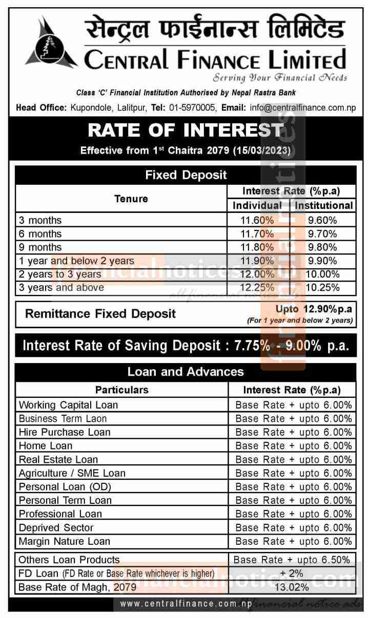 जान्नुहोस् कतिले घट्यो सेन्ट्रल फाइनान्सको ब्याजदर - Interest Rate -