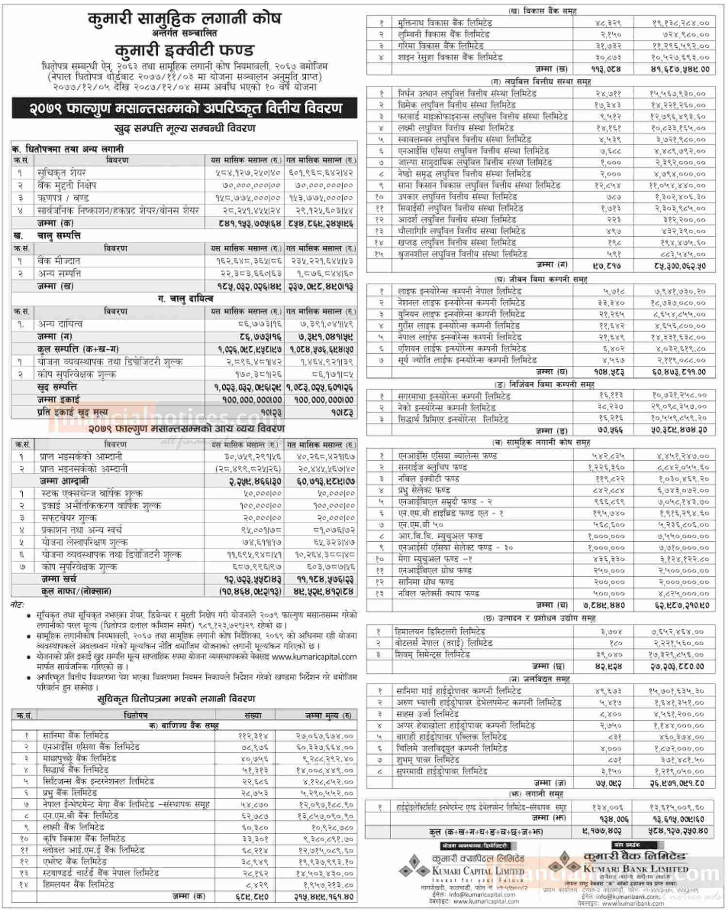 Kumari Capital has published “Kumari Equity Fund” Net Asset Value (NAV) till Falgun, 2079