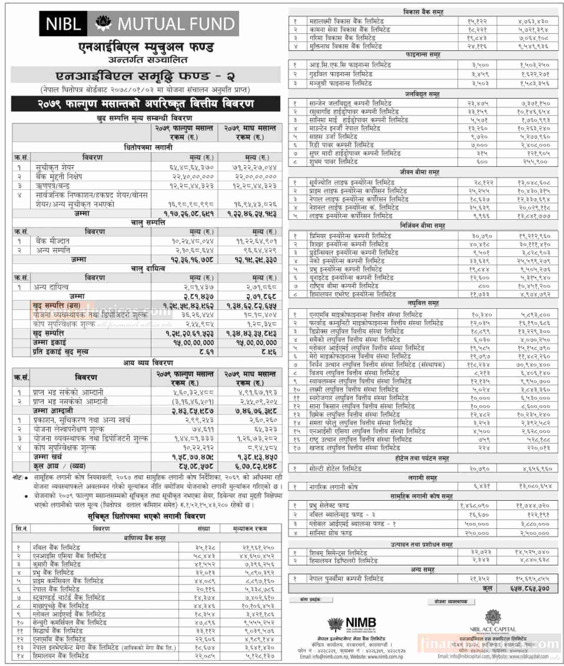 NIBL Ace Capital has published “NIBL Samriddhi Fund-2” Net Assets Value till Falgun, 2079