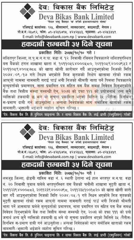 Published by Deva Bikas Bank Annapurna Post on 2074-10-10