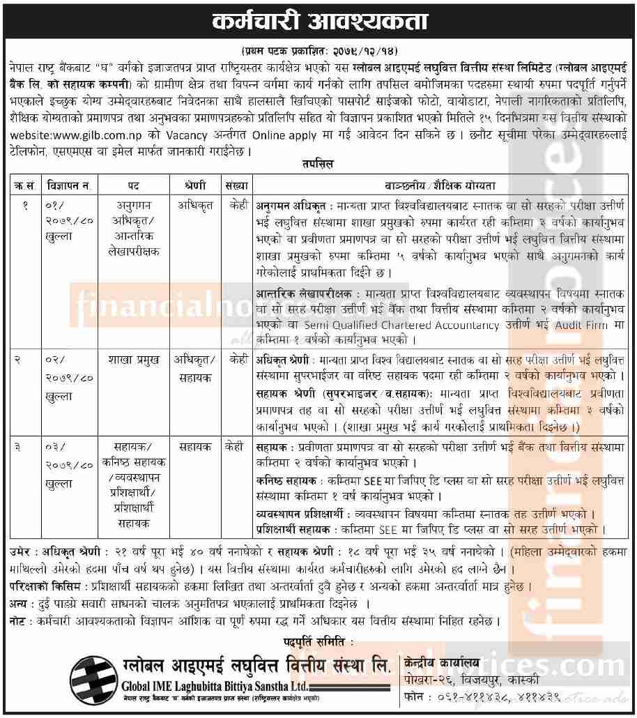 ग्लोबल आइएमई लघुवित्तमा कर्मचारी आवश्यकता सम्बन्धी सूचना