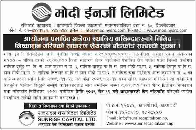 मोदी ईनर्जी लिमिटेडको IPO बाँडफाँड सम्बन्धी सूचना