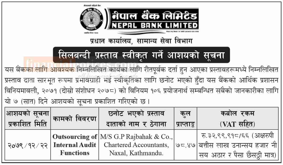 शिलबन्दी प्रस्ताव स्वीकृत गर्ने आशयको सूचना