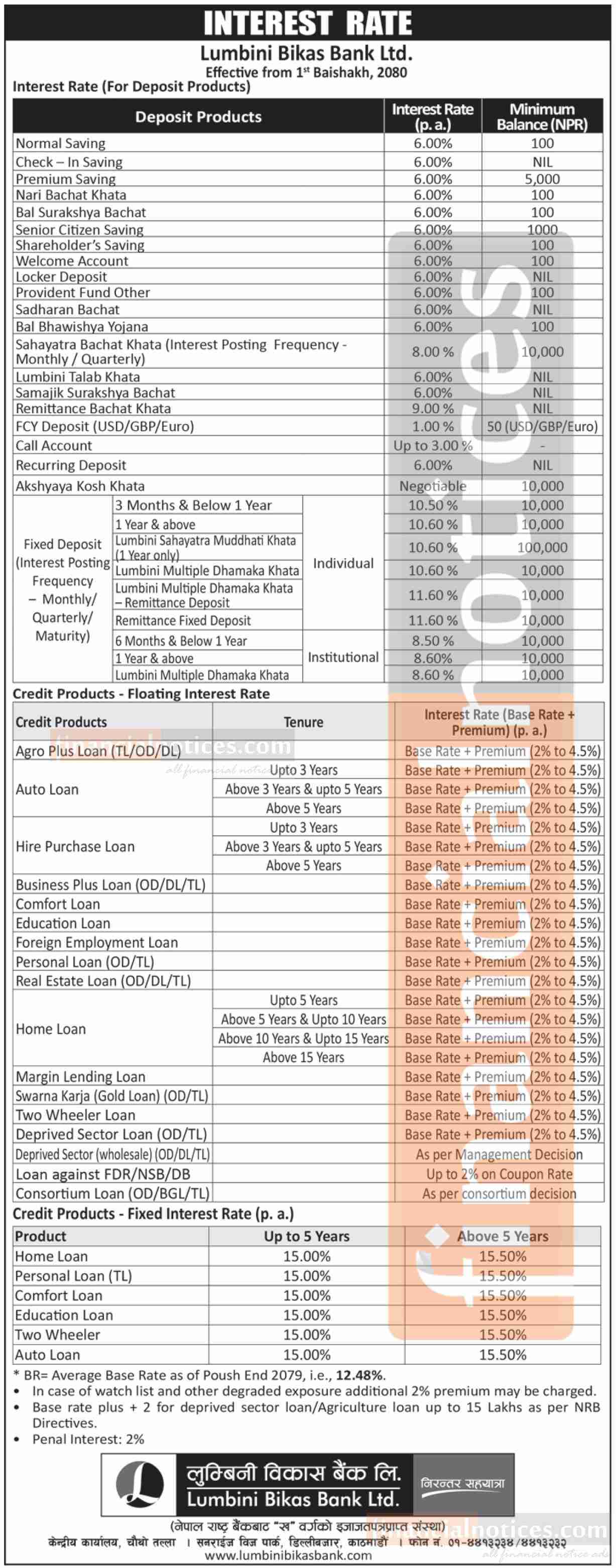 लुम्बिनी विकास बैंकको वैशाख १ गतेदेखि लागु हुने नयाँ ब्याजदर सार्वजनिक सम्बन्धी सूचना