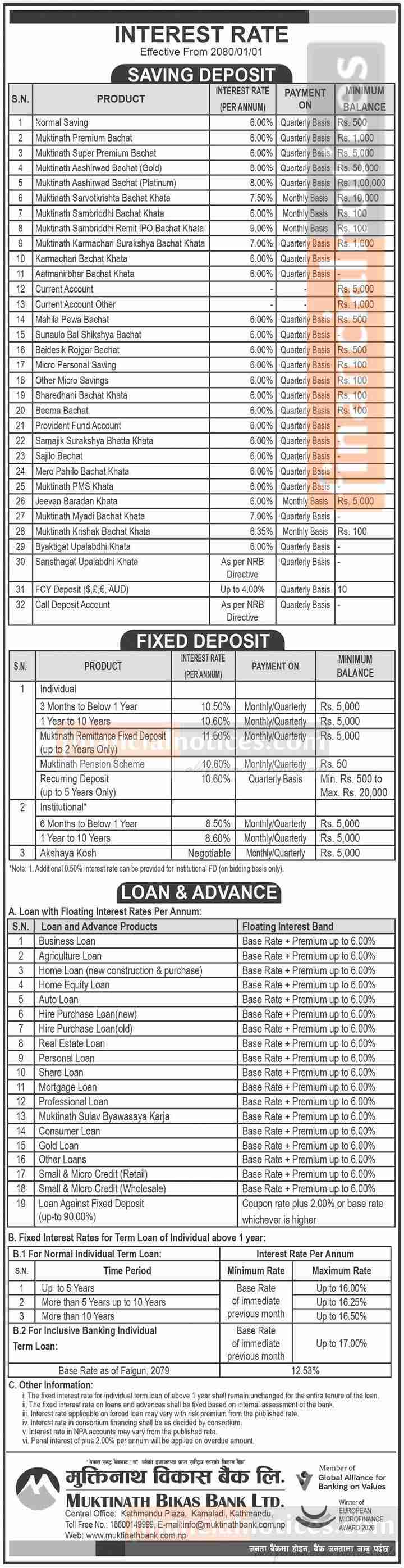 मुक्तिनाथ विकास बैंकको ब्याजदर परिवर्तनको सूचना - New Interest Rates -