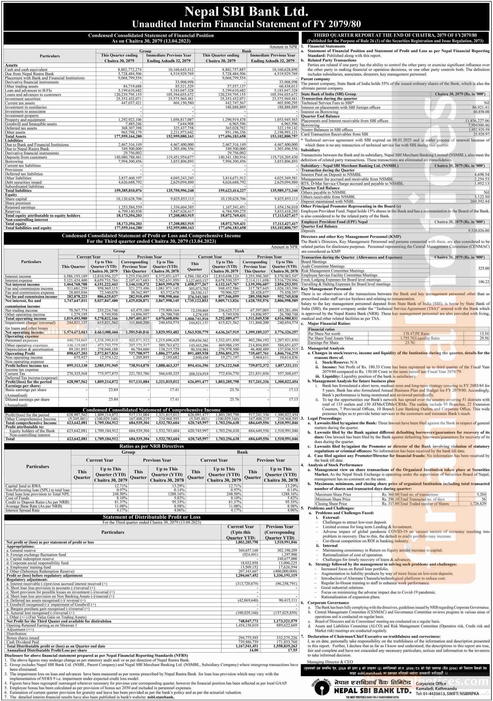 नेपाल एसबीआई बैंकको चालु आर्थिक वर्षको तेस्रो त्रैमाससम्ममा खुद नाफा १ अर्ब ८० करोड ३२ लाख रुपैयाँ