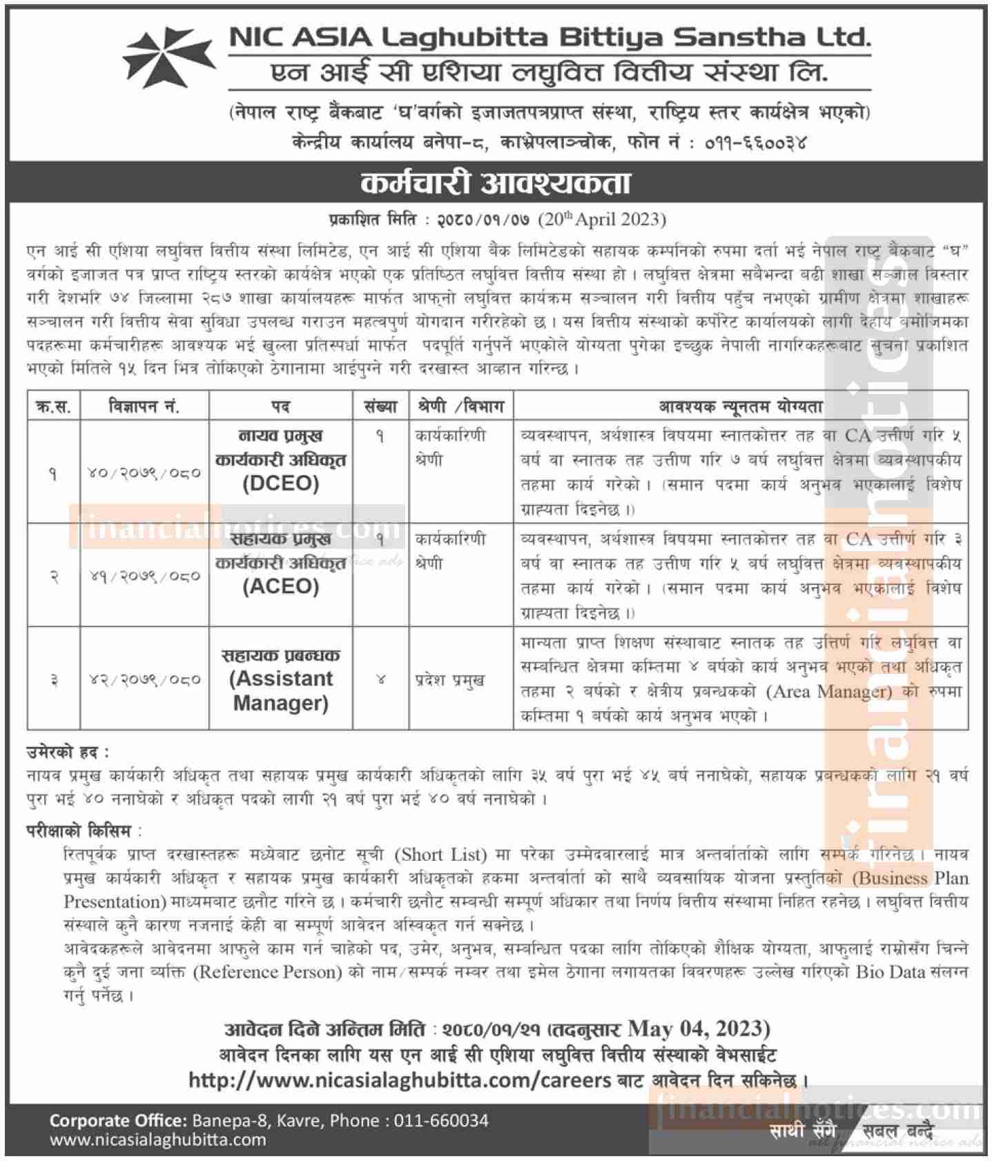 एन आई सी एशिया लघुवित्तमा कर्मचारी आवश्यकता