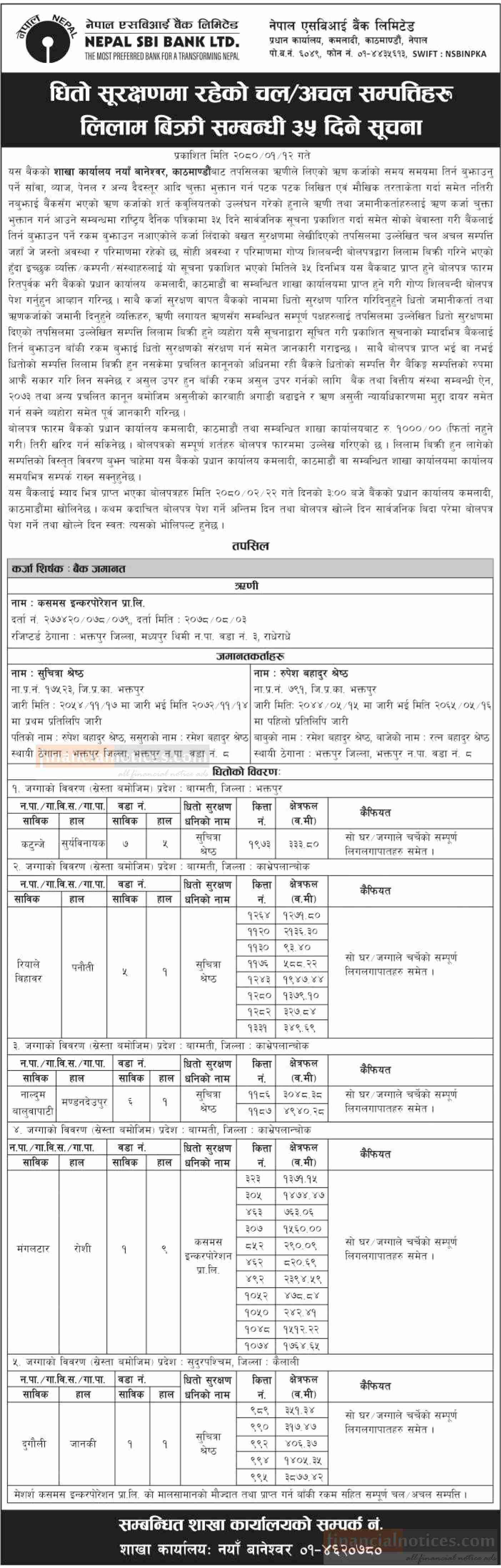 Nepal SBI Bank: Auction Notice for Non-Banking Assets at Geta-2, Kailali