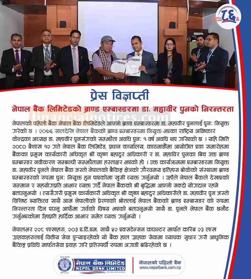 नेपाल बैंकले ब्राण्ड एम्बास्डर नियुक्त गरेको सम्बन्धी सूचना