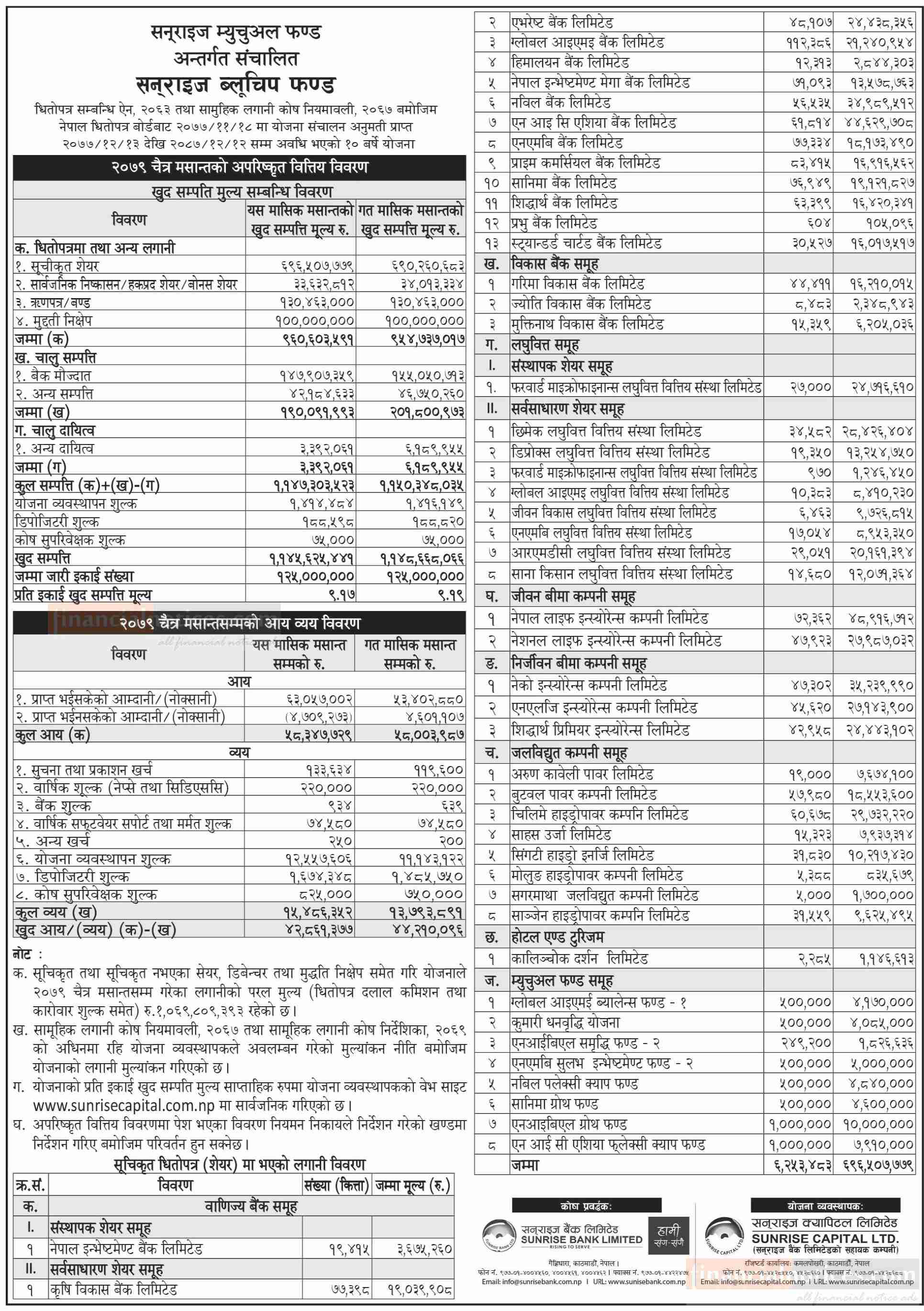 Sunrise Capital has published (Sunrise Bluechip Fund) Net Assets Value till Chaitra, 2079