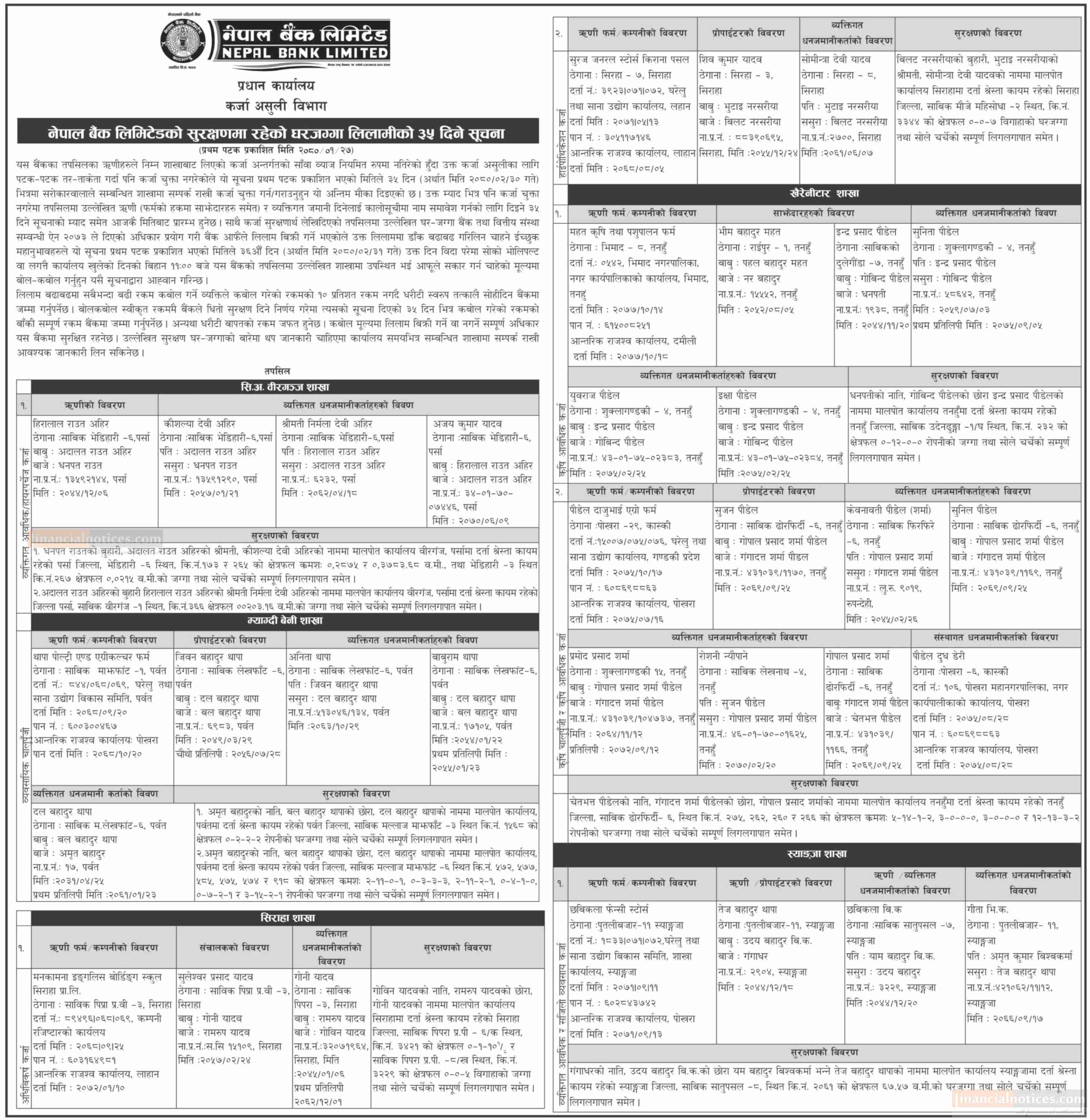 नेपाल बैंकको सुरक्षणमा रहेको घरजग्गा लिलामीको सम्बन्धी सूचना