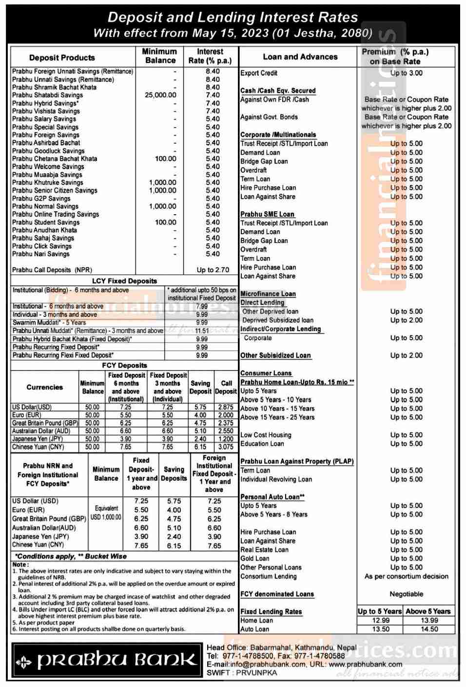 प्रभु बैंकको जेष्ठदेखि लागु हुने गरी नयाँ ब्याजदर तालिका सार्वजनिक -New Interest -