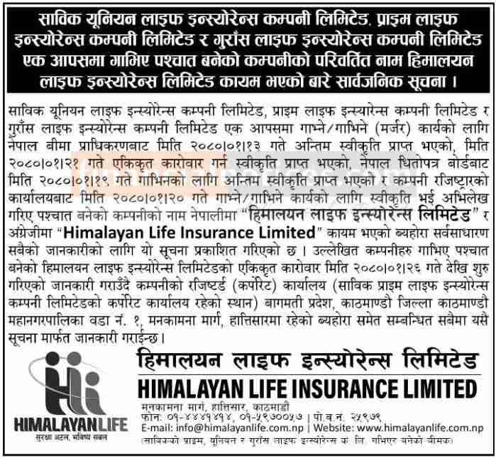Published by Himalayan Life Insurance Limited on 2080-1-31