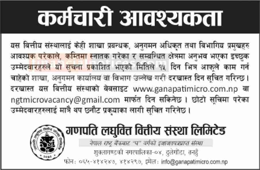 गणपति लघुवित्तमा कर्मचारी आवश्यकता