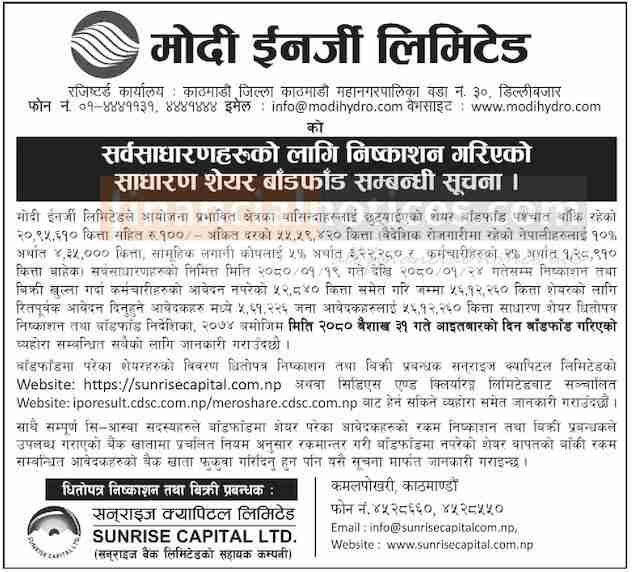 मोदी इनर्जीको आइपीओ (IPO) बाँडफाँट सम्बन्धी सूचना