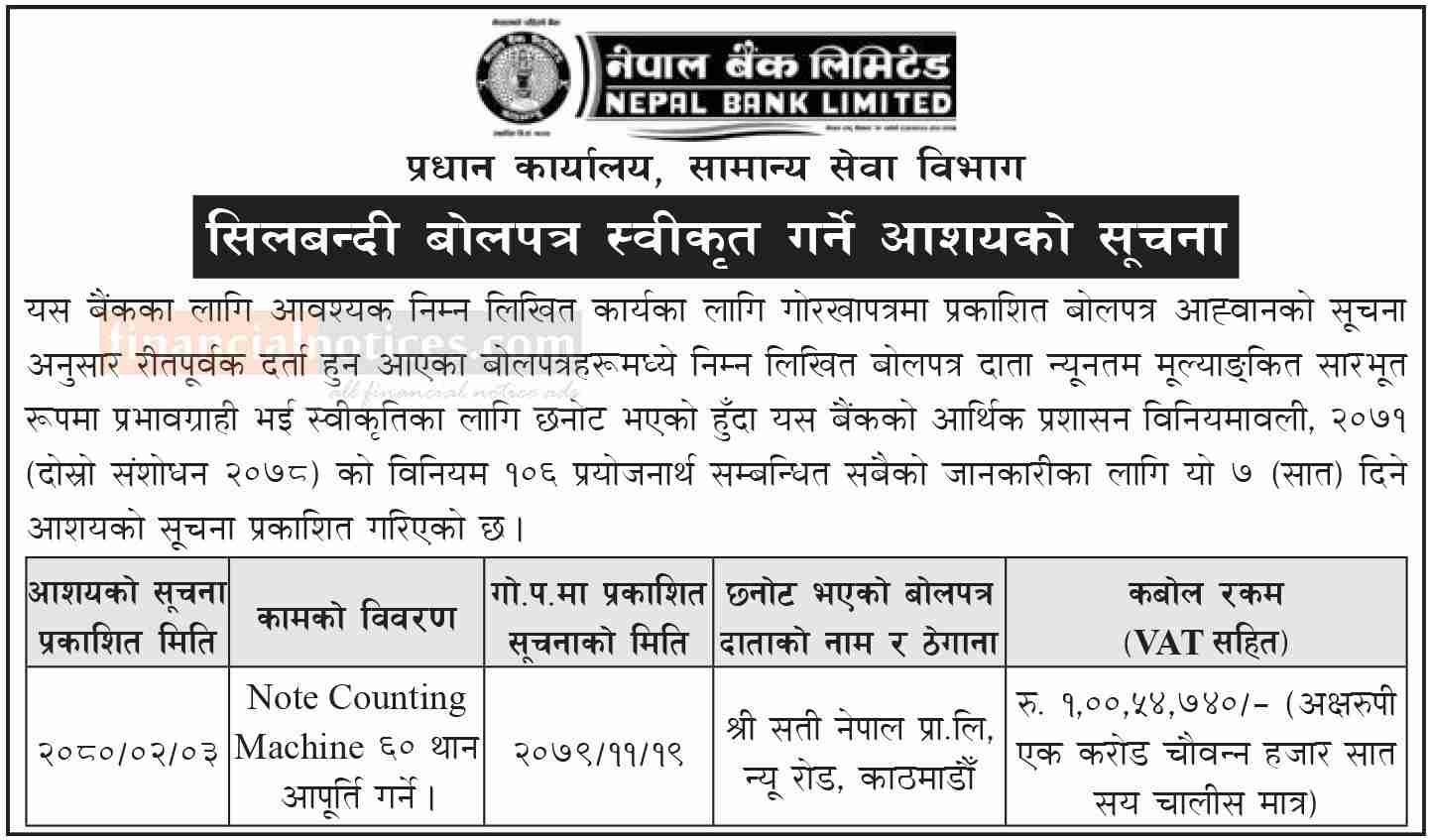 शिलबन्दी बोलपत्र स्वीकृत गर्ने आशयको सूचना