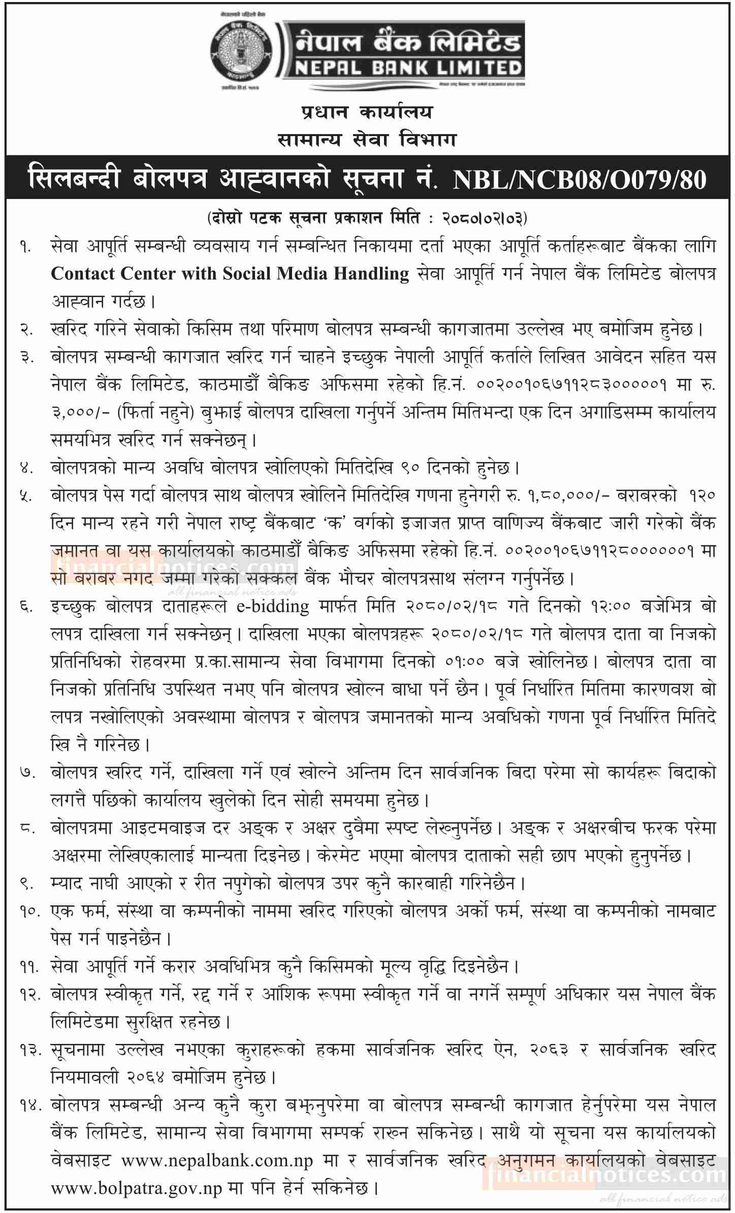 शिलबन्दी बोलपत्र आव्हानको सूचना