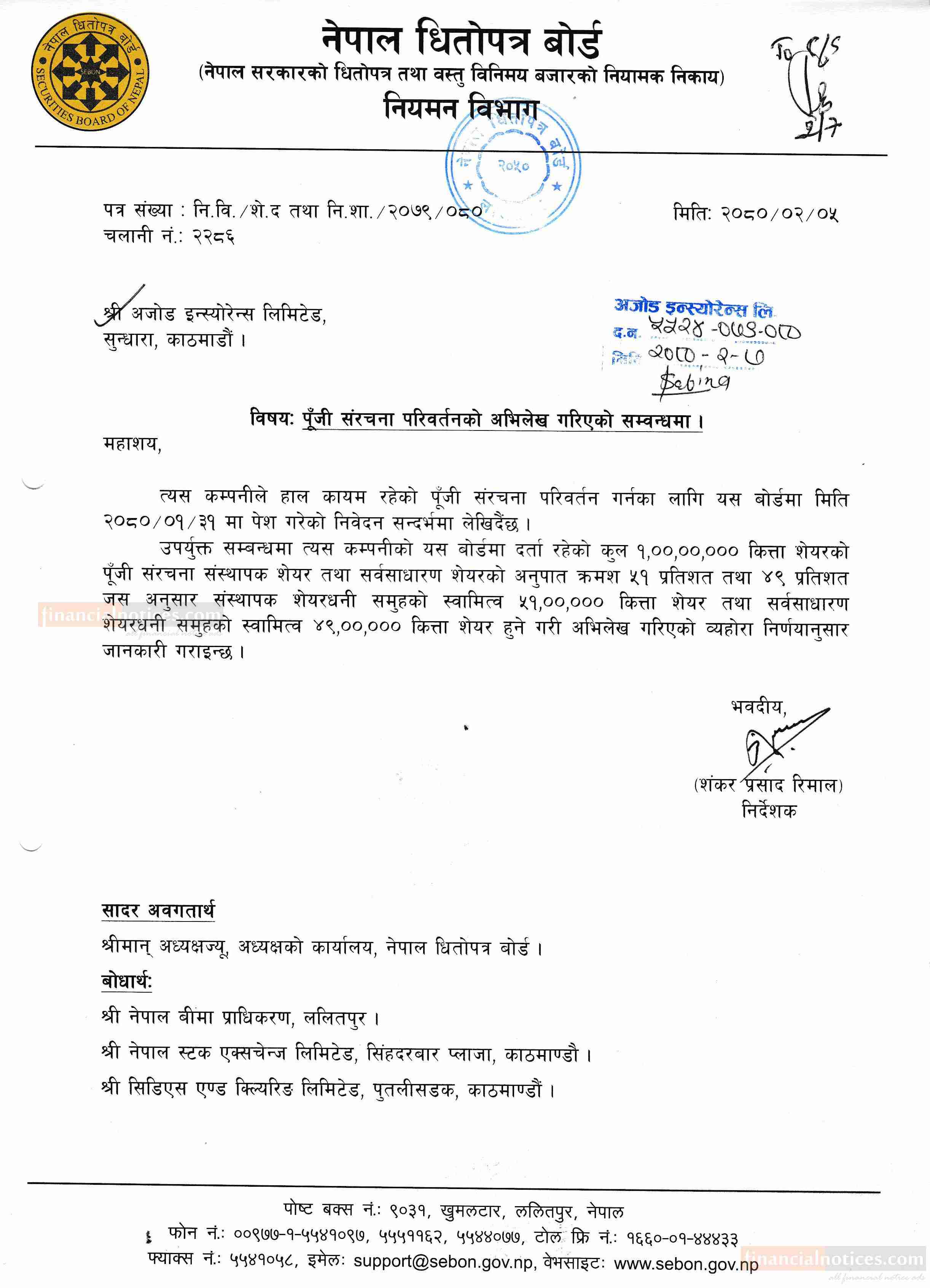 पुँजी संरचना परिवर्तनको अभिलेख गरिएको बारे सूचना