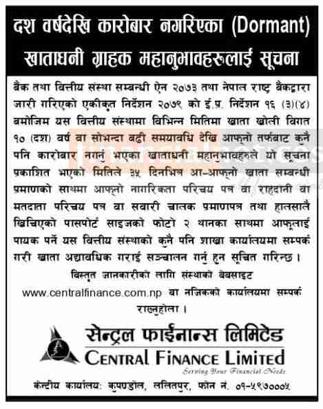 दश वर्षदेखि कारोबार नगरिएका खाताधनीहरुलाई जरुरी सूचना
