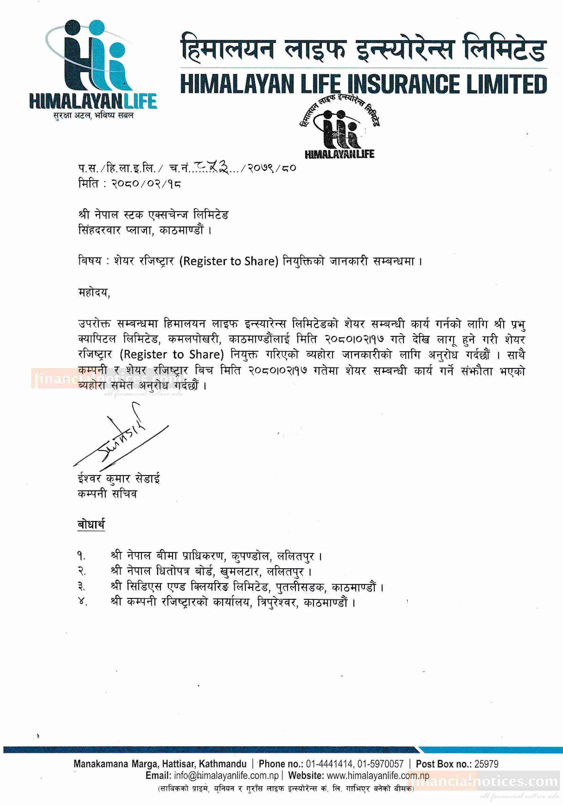 Published by Himalayan Life Insurance Limited on 2080-2-18