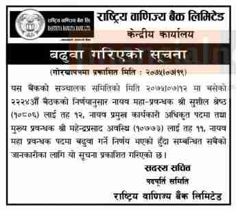 बढुवा गरिएको सम्बन्धी सूचना !!!
