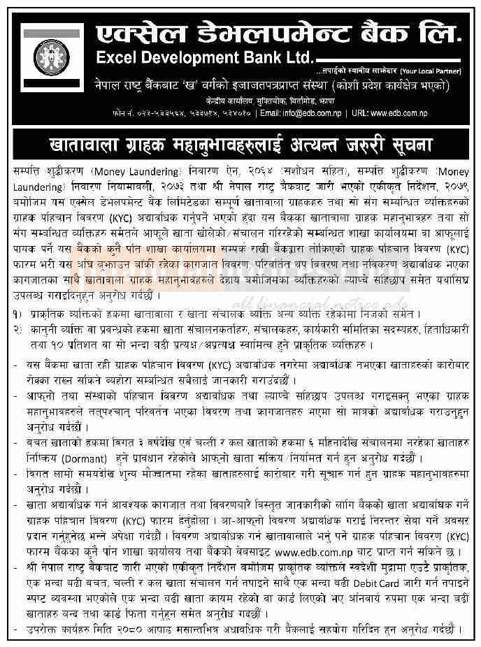 बैंकका खातावाला ग्राहकहरुलाई अत्यन्त जरुरी सूचना