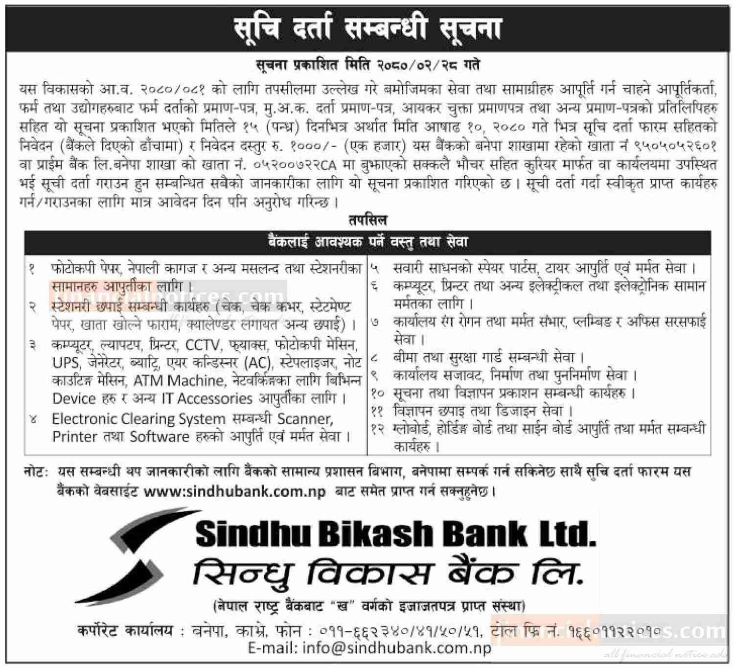 बैंकको सूचि दर्ता सम्बन्धी सूचना