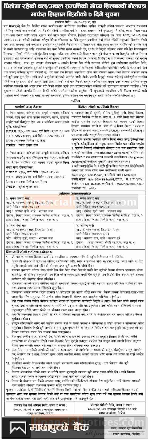 Kumari Bank Auction Notice for Non-Banking Assets at Mahendranagar, Kanchanpur -