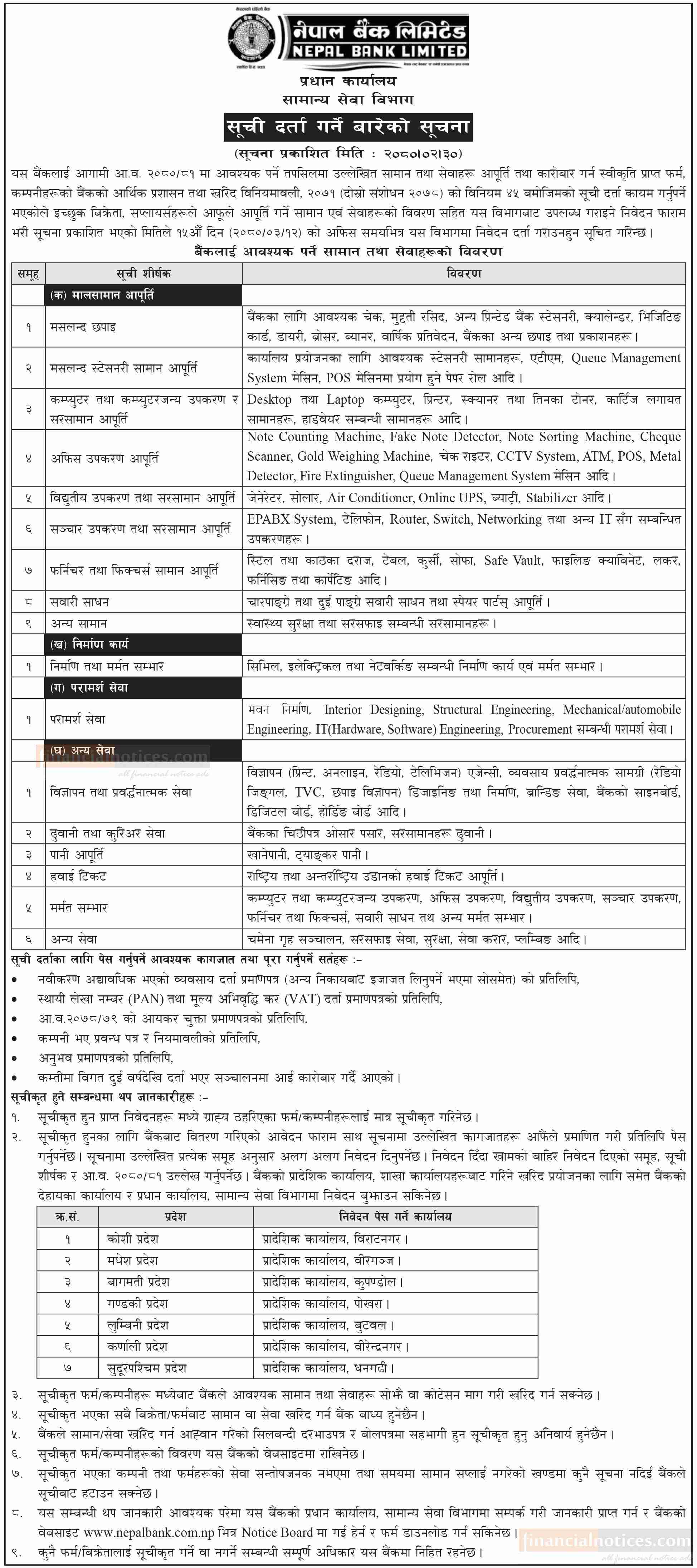 नेपाल बैंकको सूची दर्ता गर्ने बारेको सूचना