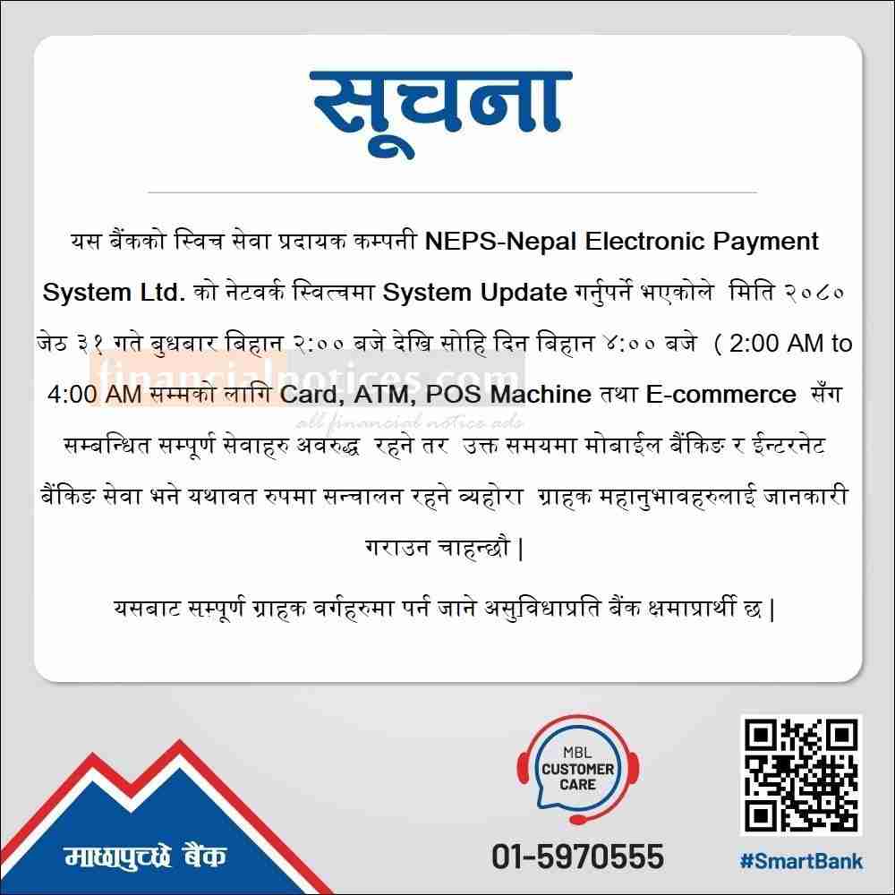 माछापुच्छ्रे बैंकका ग्राहकहरूलाई महत्त्वपूर्ण सूचना