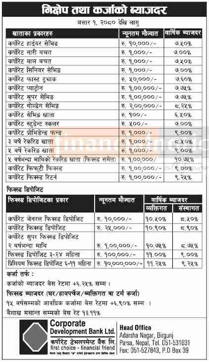 निक्षेप तथा कर्जाको ब्याजदर परिवर्तनको सूचना