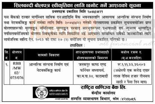शिलबन्धी बोलपत्र स्वीकृती सम्बन्धी सूचना !!!