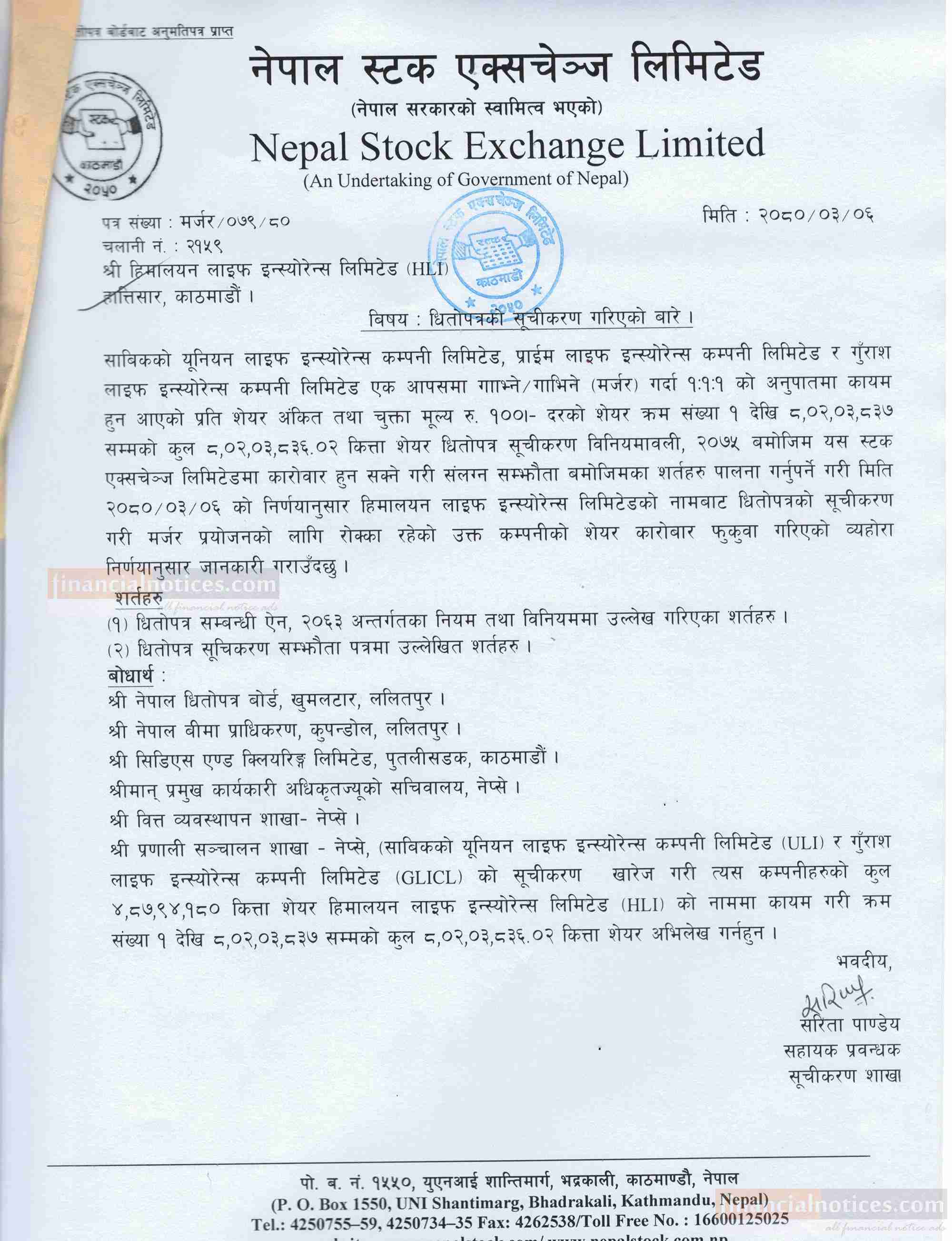 Published by Himalayan Life Insurance Limited on 2080-3-06