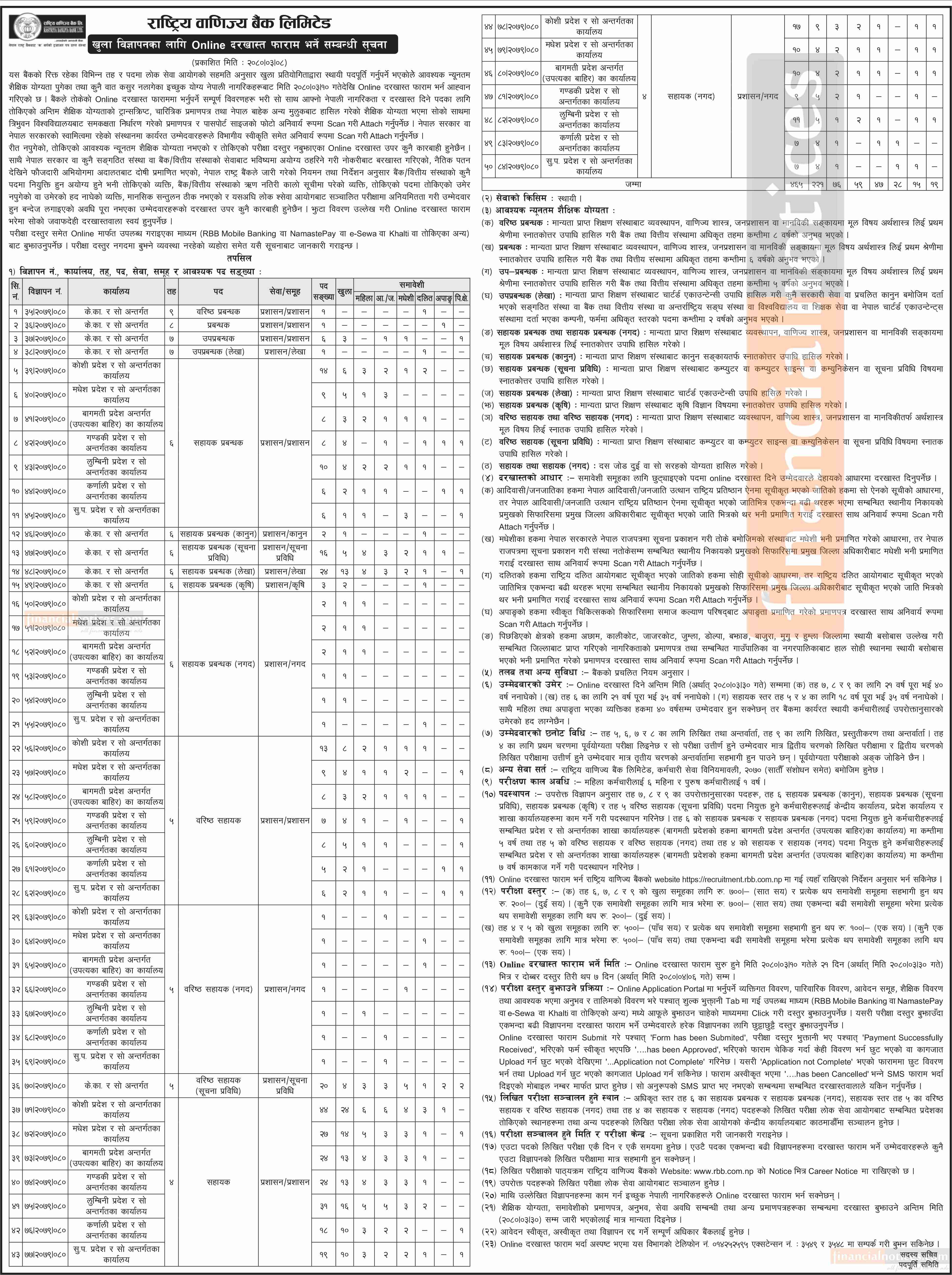The Rastriya Banijya Bank, in accordance with the consent and agreement of the Public Service Commission, has declared its intent to permanently fill vacant positions through an open competition. Eligible Nepali citizens who meet the required minimum educational qualification and have a clean criminal record are invited to submit their applications.