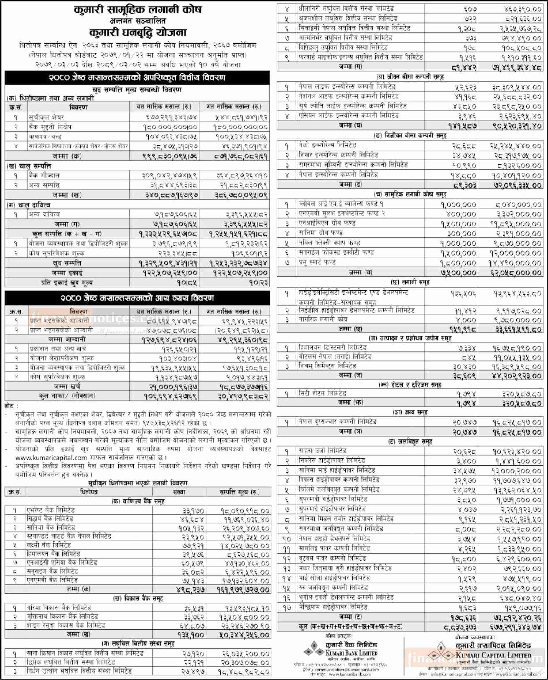 Kumari Capital has published “Kumari Dhanabriddhi Yojana” Net Asset Value till Jestha, 2080