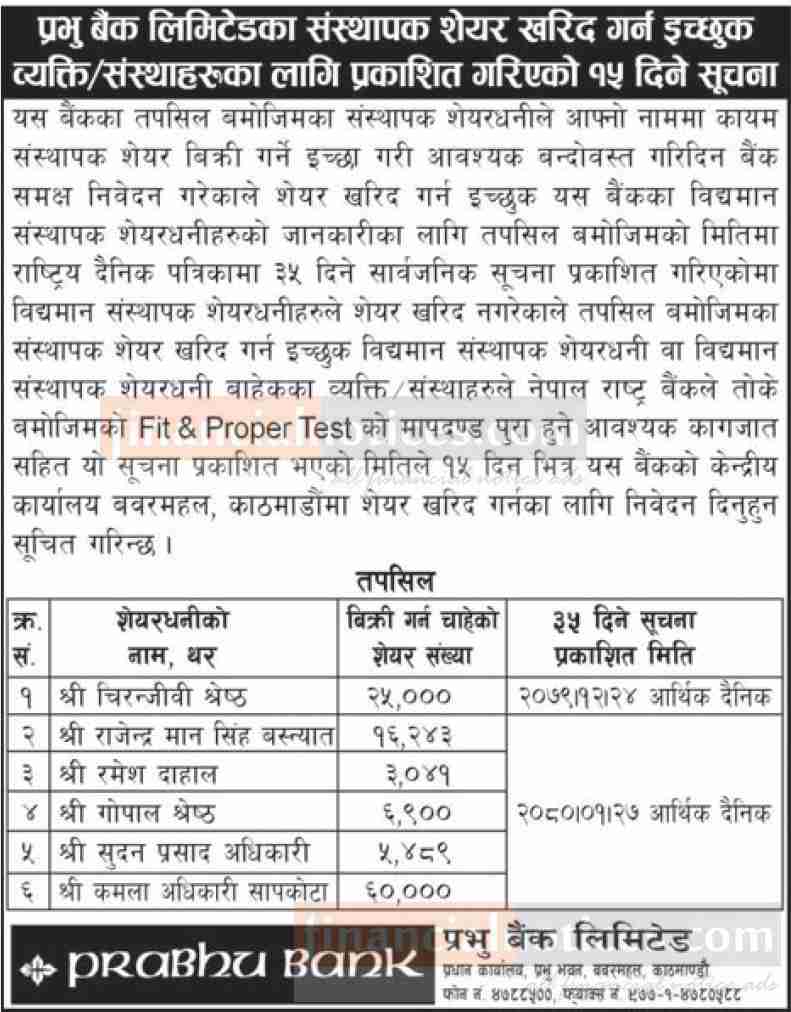 संस्थापक शेयर बिक्री सम्बन्धी कुमारी बैंकको सूचना
