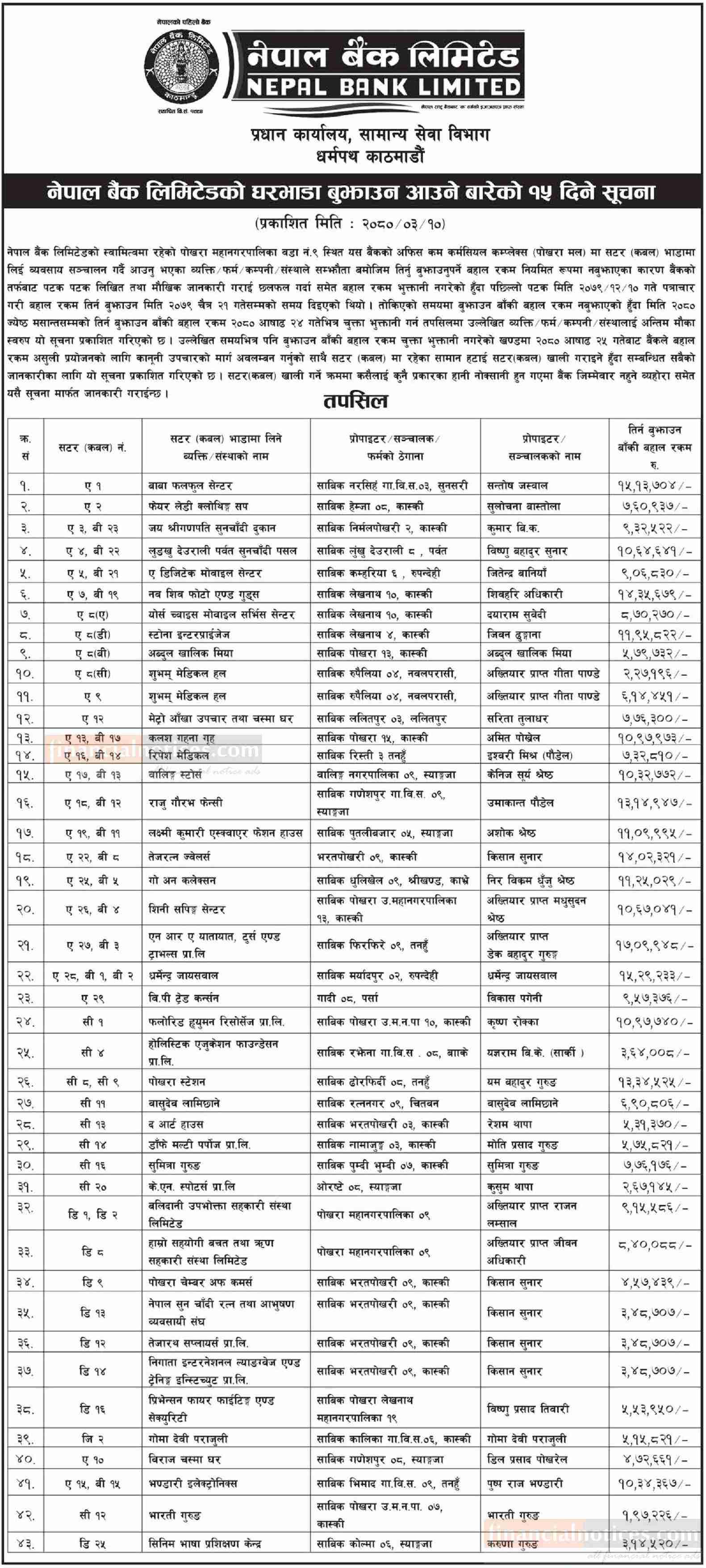 नेपाल बैंकको घर भाडा बुझाउन आउने बारेको सूचना
