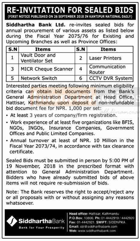 Re-Invitation for Sealed Bids- SBL
