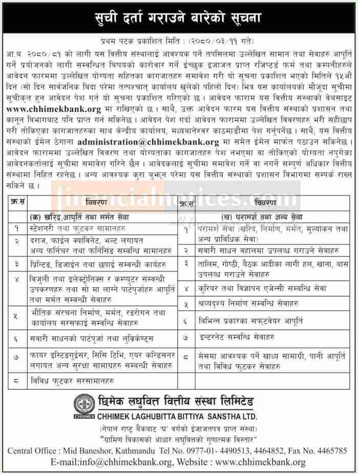 सूची दर्ता गराउने बारेको सूचना