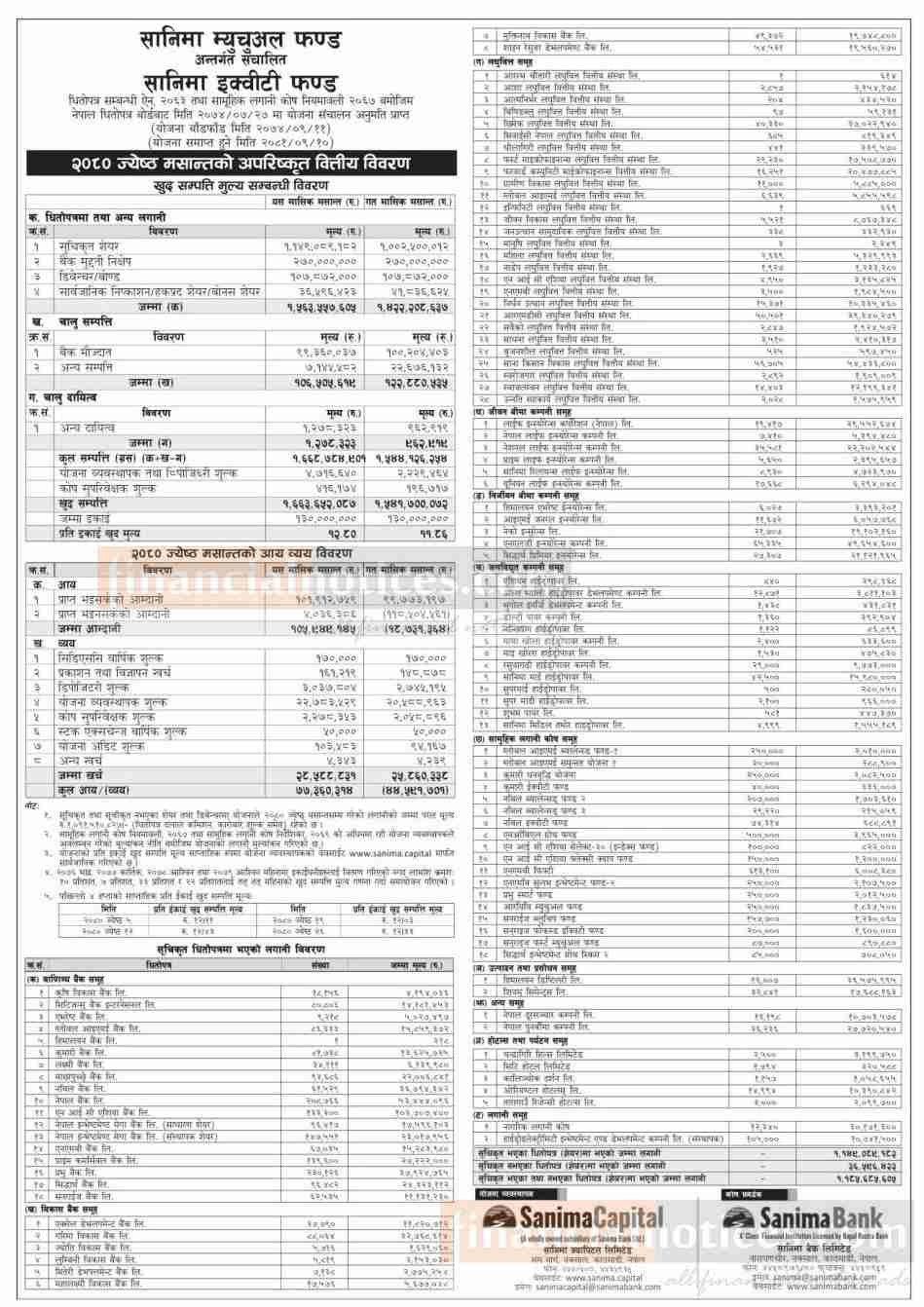 Sanima Capital Releases Net Asset Value of 'Sanima Equity Fund' as of Jestha, 2080