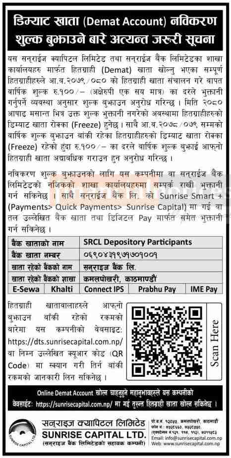 डिम्याट खाता नविकरण शुल्क बुझाउने सम्बन्धी सूचना