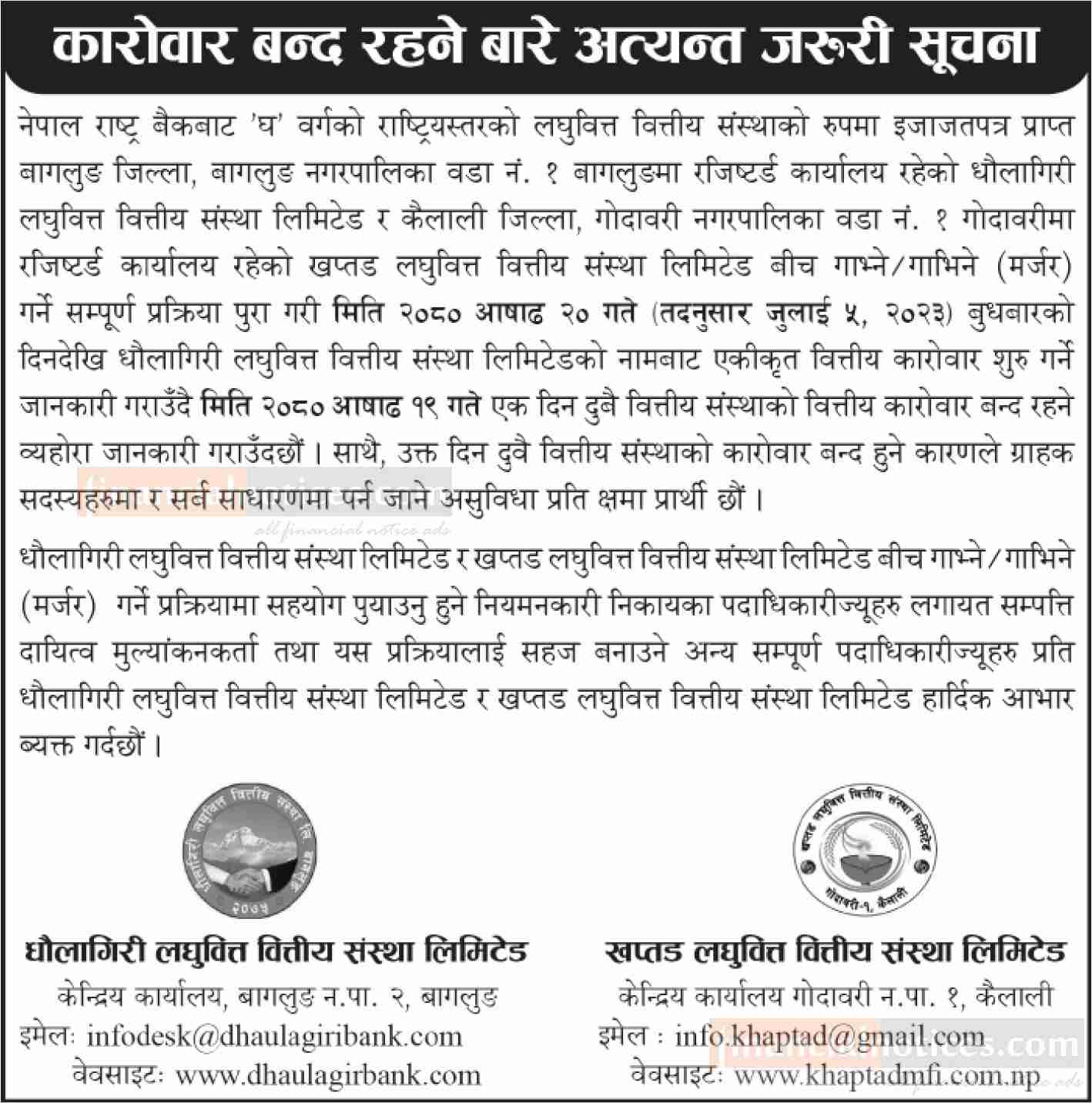 लघुवित्तको कारोबार बन्द रहने बारे अत्यन्त जरुरी सूचना