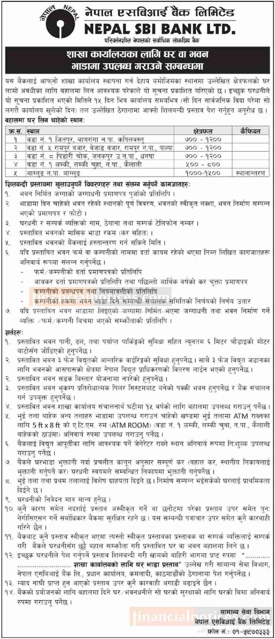 बैंकलाई शाखा कार्यालयको लागि घर आवश्यकता सम्बन्धी सूचना