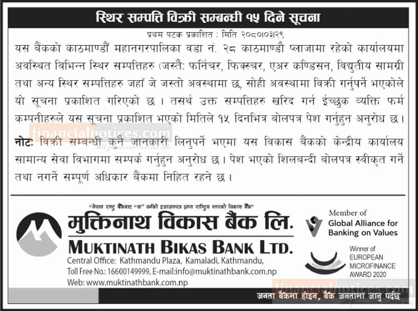 स्थिर सम्पत्ती बिक्री सम्बन्धी सूचना