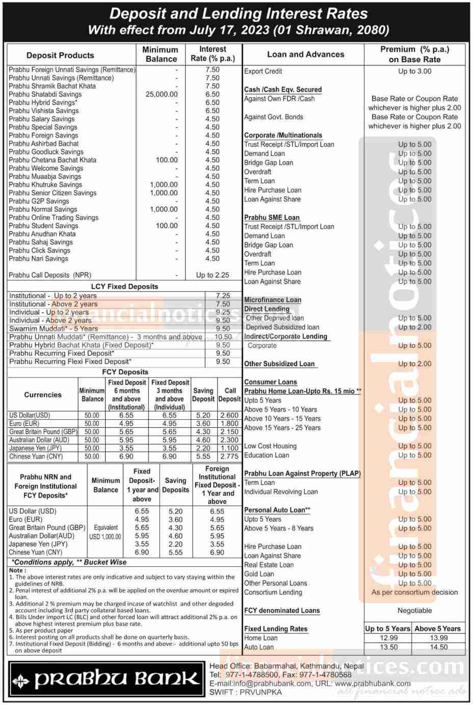 साउन १ गतेदेखि प्रभु बैंकको नयाँ ब्याजदर सार्वजानिक, हेर्नुहोस् कुन खातामा कति पुग्यो ?