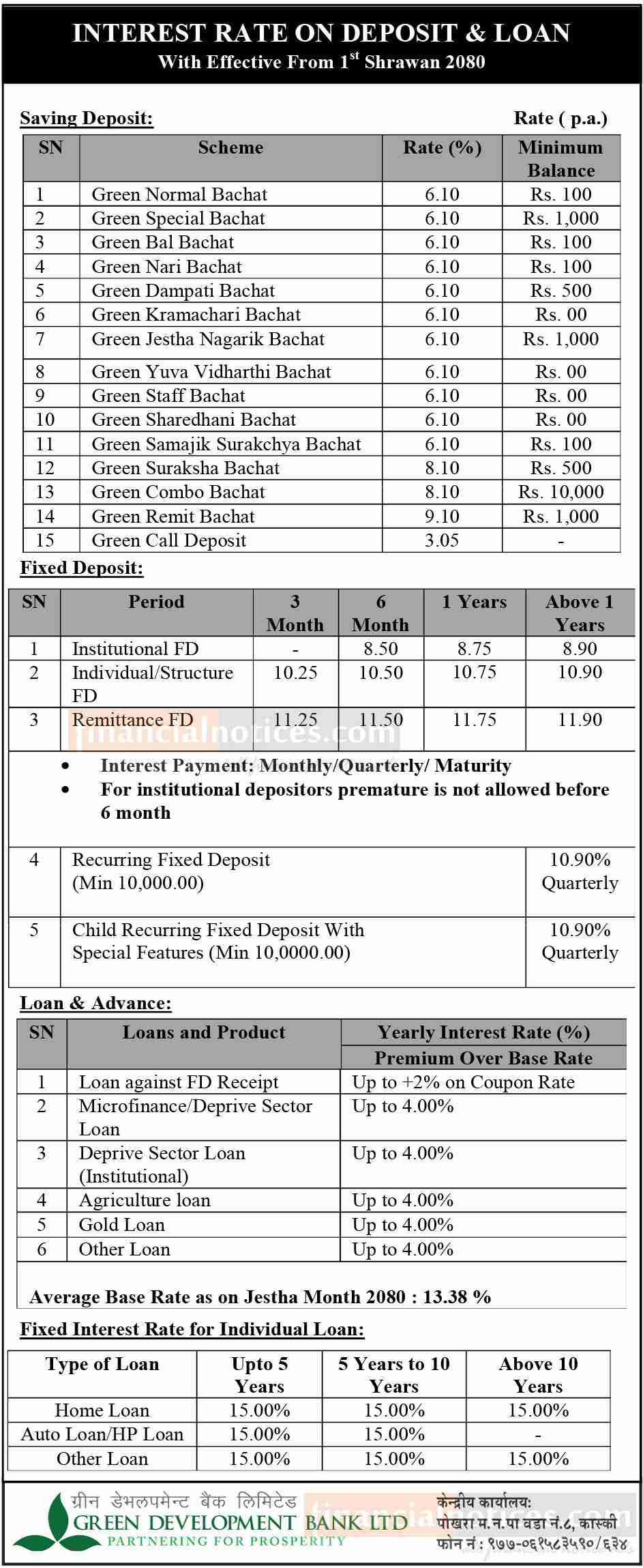 ग्रिन डेभलपमेन्टबैंकको साउन १ गतेदेखि लागु हुने नयाँ ब्याजदर सार्वजनिक